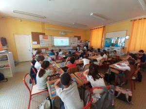 Jeudi 16 octobre , les élèves de CM1 ont eu la visite de Aurore Bernard , responsable de la bibliothèque municipale de Haute Goulaine. La classe participera au prix da la bande dessinée” Au fil des bulles”. Après les vacances de la Toussaint, les élèves liront 4 bandes dessinées choisies par la bibliothèque municipale et devront par la suite élire celle qu’ils ont le plus aimée. Aurore a présenté les 4 bandes dessinées sélectionnées et a expliqué le déroulement de ce prix .